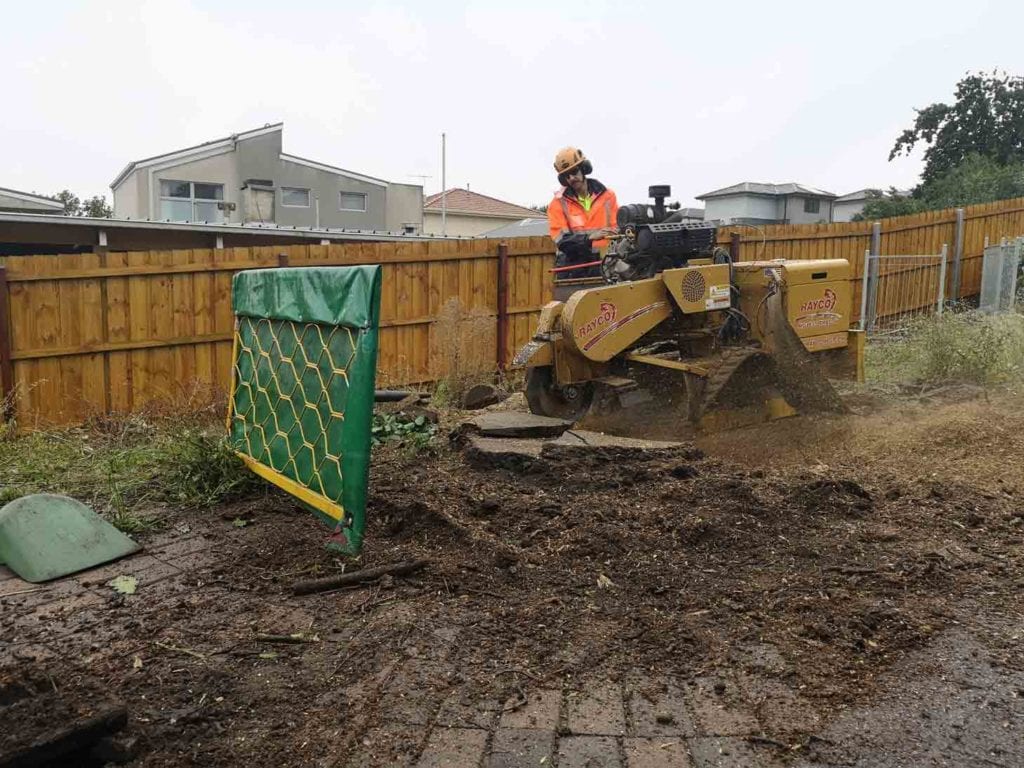 This large oak stump removal in Pascoe Vale was a nice local job for us, approximately 6 minutes from our depot to be exact! We knew we would be on site for a good 3 to 4 hours and it was pouring with rain too but that didn’t stop us.