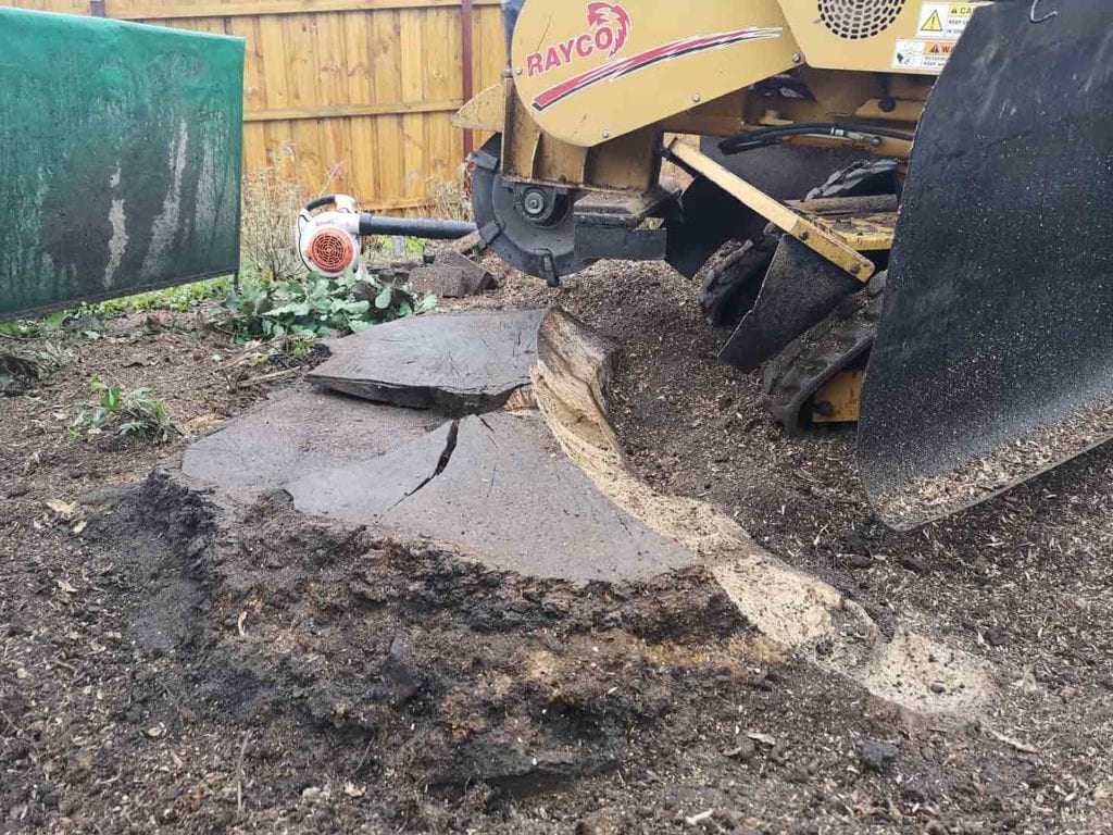 The stump had some epicormic growth or suckers growing out of it when we arrived which you can see in the photos, we decided to cut these off about halfway through the job, just so we could get some good shots for you all.